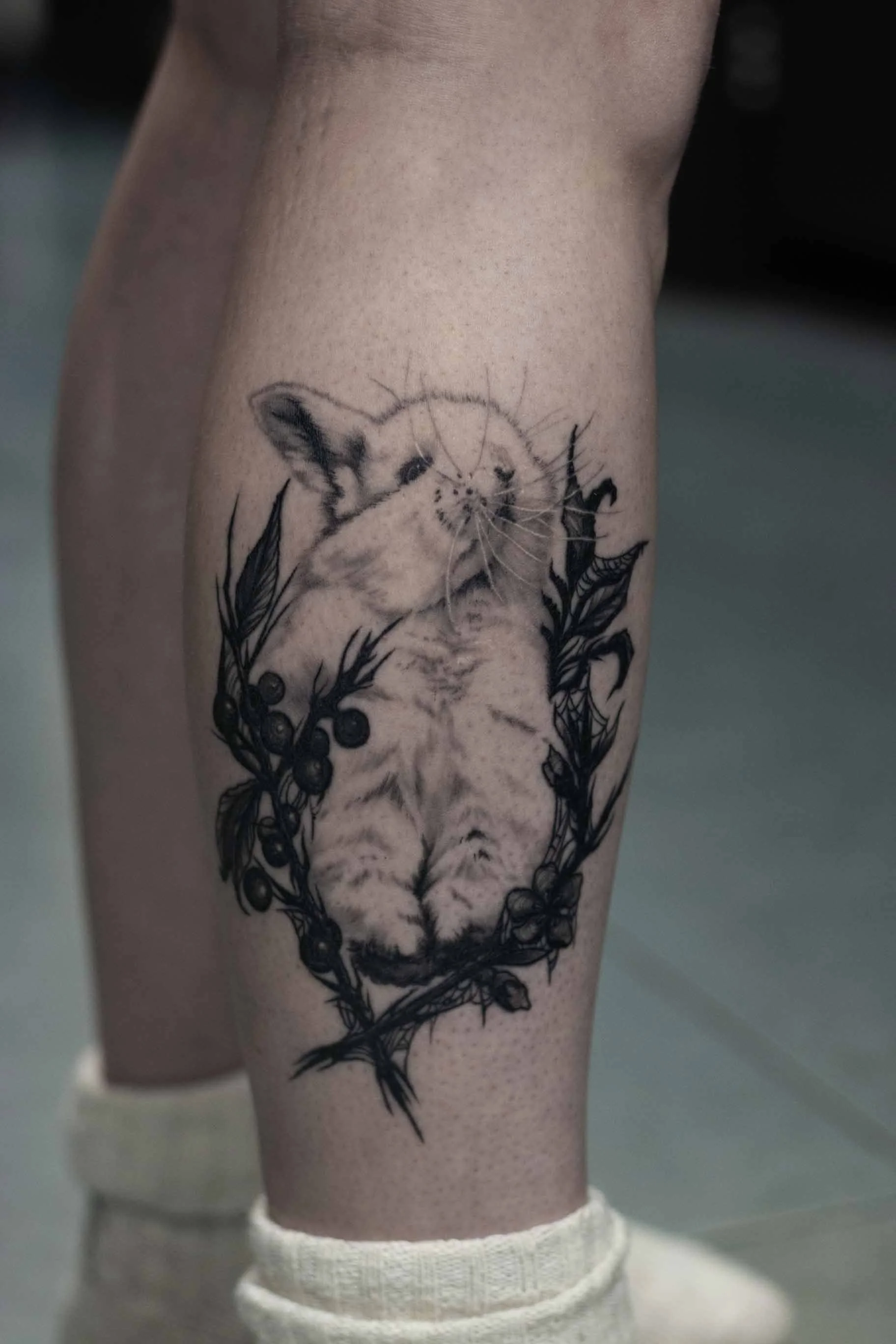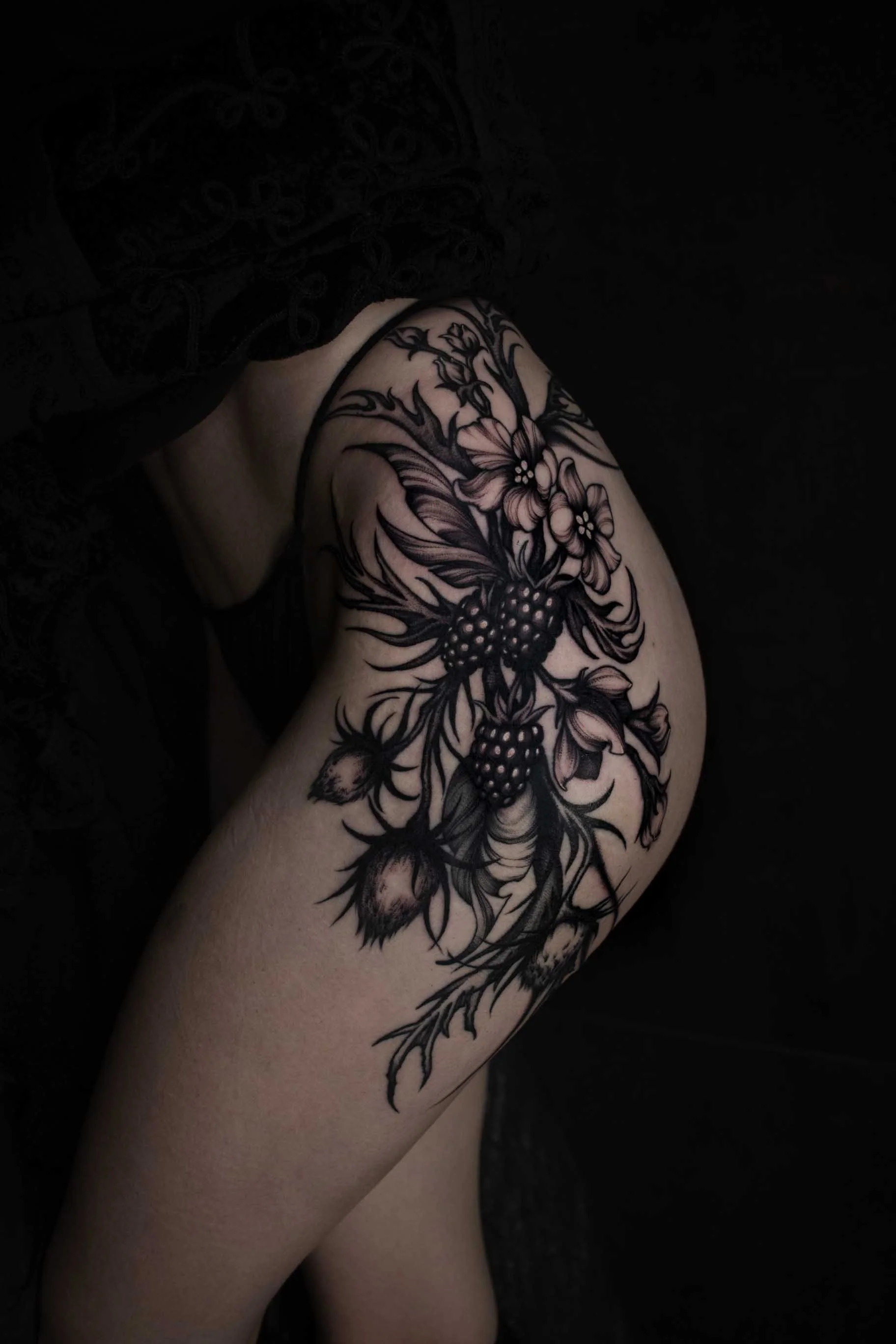 Samantha Thornhill is a rising tattoo artist based in Sheffield, who began her tattoo journey in 2023 as an apprentice to renowned artist Joshua Beatson. Since starting her career, Samantha has quickly made a name for herself with her stunning blackwork tattoos, often incorporating botanical, fantasy, and dark influences into her designs.